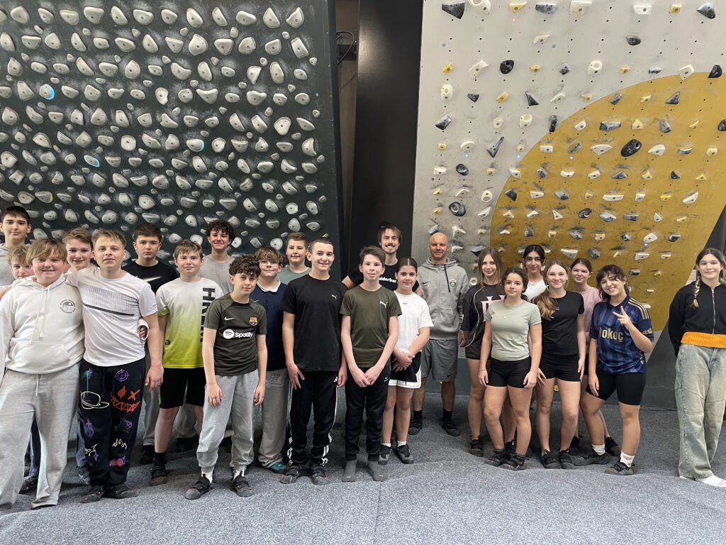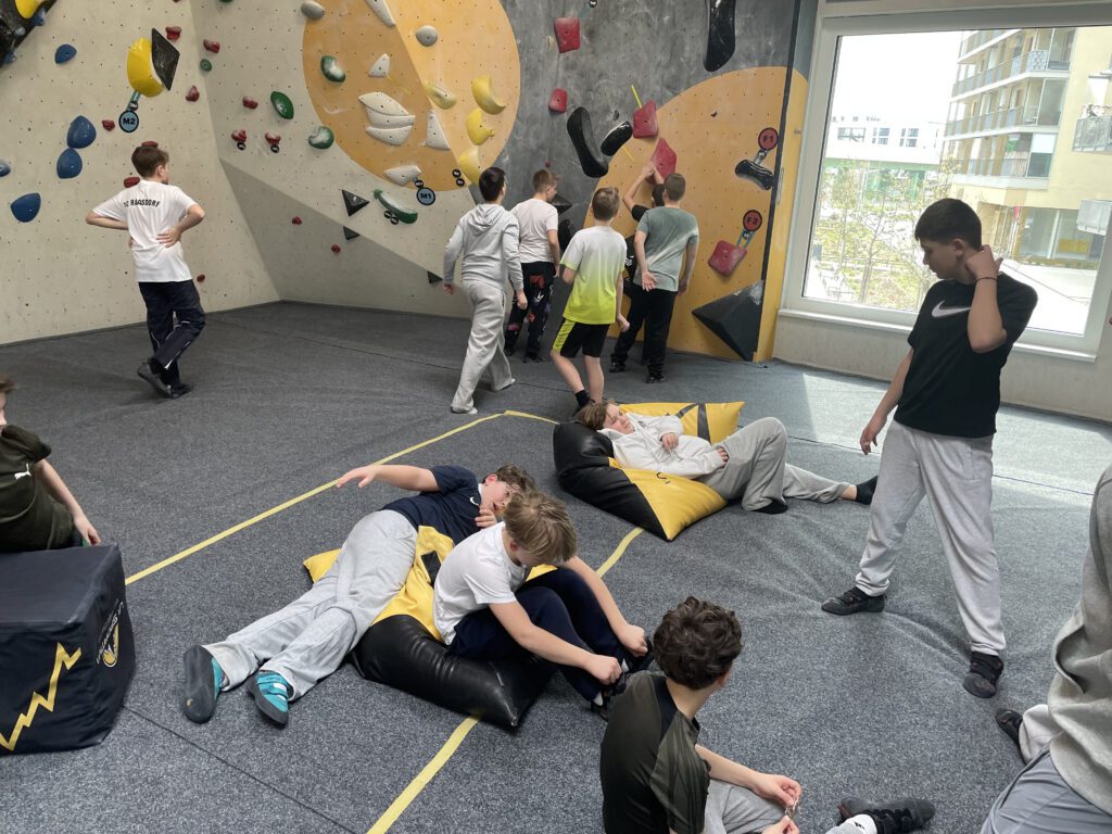 Am letzten Schultag vor den Osterferien unternahm die 3C mit Unterstützung von Andi Bauer den kurzen Weg zur Boulderhalle in der Seestadt Aspern um zwei Stunden mit einem Trainer zu bouldern. Bei dem 9 Minuten Fußweg vorbei am See und den Skateanlagen und Fußballkäfigen wären wir fast davon geflogen – so stark war der Wind – und wir waren froh, in einer so modernen und sauberen Halle zu bouldern und nicht draußen bleiben zu müssen.