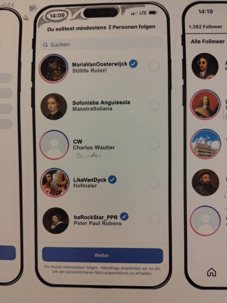 Die Kunstvermittlung vor Ort hat sich mit ihrem Arbeitsblatt zur Ausstellung auch selbst übertroffen: Die jungen Besucher:innen konnten das Instagram Profil von Michelina Gautier gestalten. (Siehe Foto). Außerdem haben wir noch die unglaublich realistischen Darstellungen der anderen barocken Vanitas Stillleben bewundert und über die Vergänglichkeit des Lebens nachgedacht. Carpe diem!