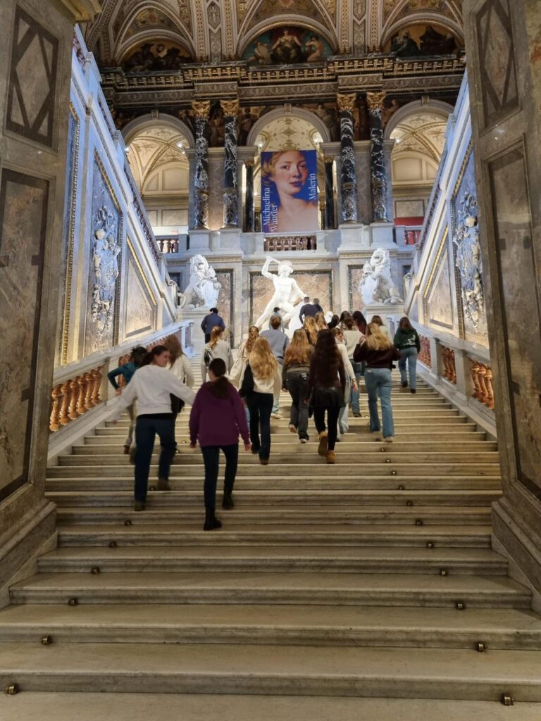 Am 16.1.2026 besuchte die 5A die Ausstellung von Michelina Gautier, eine wiederentdeckte Barockmalerin, die den alten Meistern um nichts nachstand. Über Michelina Gautier ist uns nicht viel bekannt, deshalb gab es in der interessanten Führung auch viele Informationen über Geschichtsforschung und Untersuchungen ihrer Gemälde. Bei einigen gab es ihre Signatur zu finden – die, um nicht das Gemälde zu stören- ganz zart in Ecken oder Sockeln in den Bildern versteckt wurde.