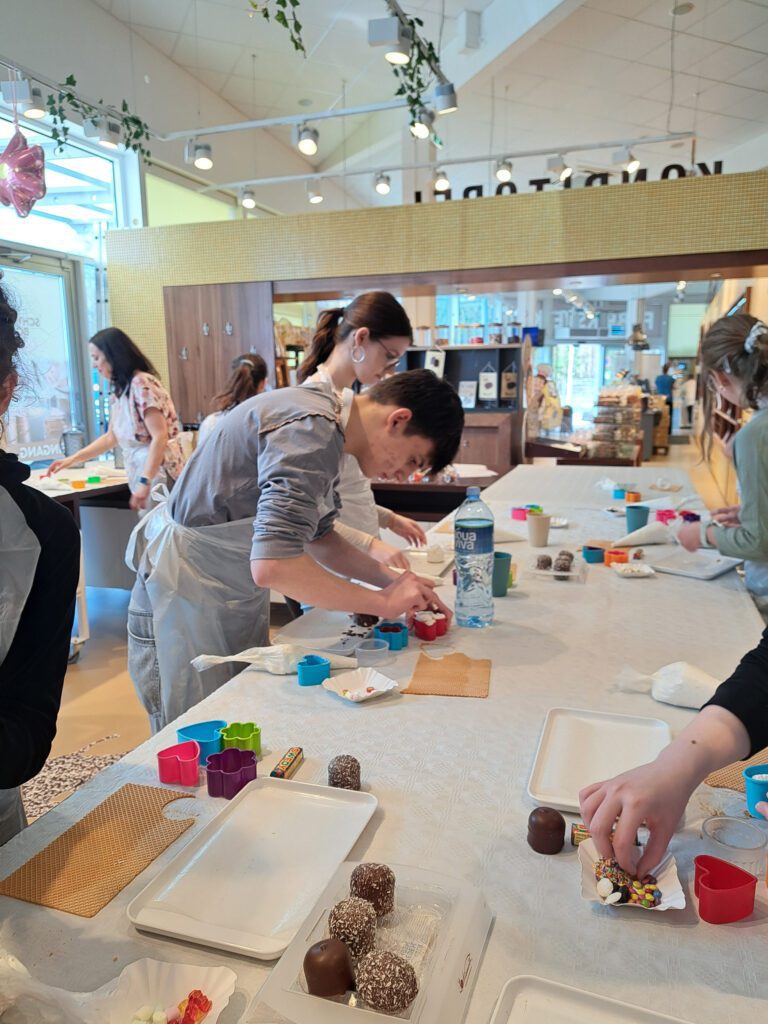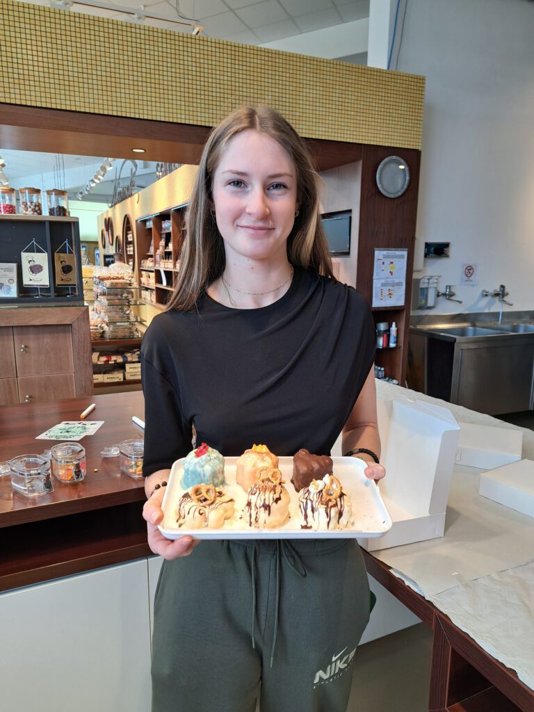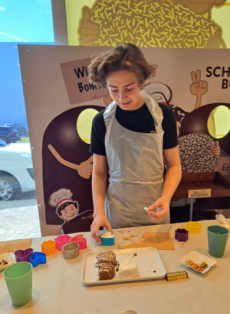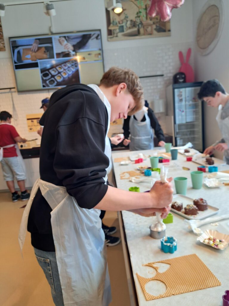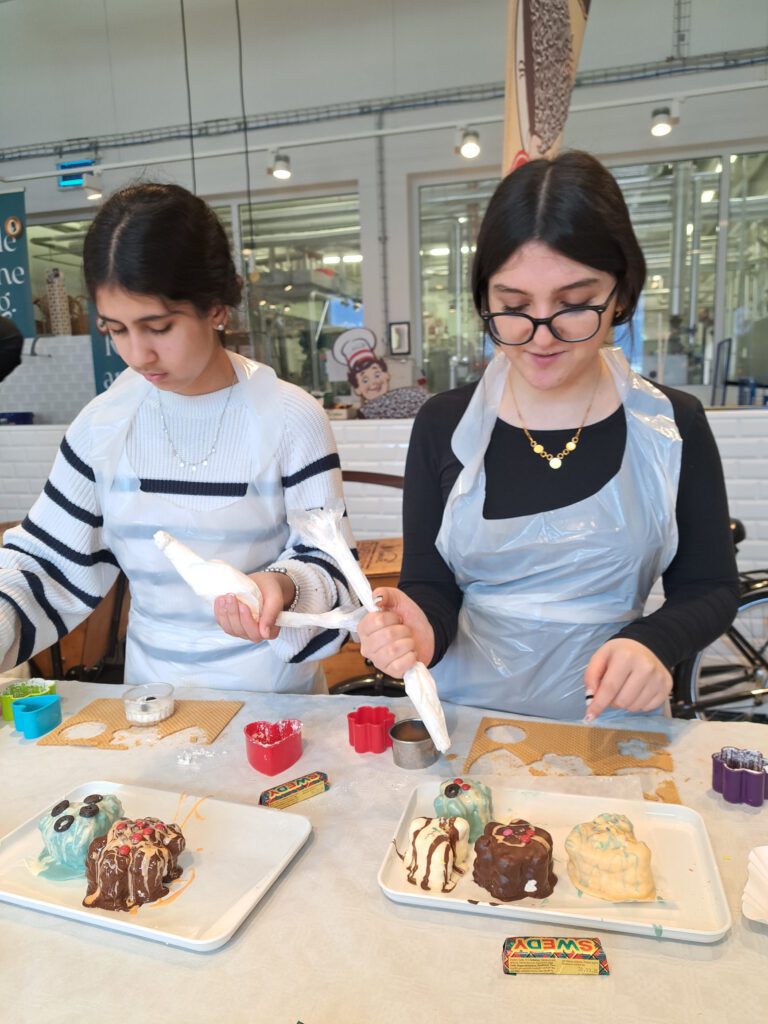 Im darauffolgenden Workshop stellten die Schüler*innen mit den bereitgestellten Materialien (Waffeln, Schaum und verschiedenste Schokoladeglasuren) ihre eigenen Schwedenbomben her. Der Besuch bei Niemetz war eine ansprechende Kombination aus Geschichte, Wirtschaft und Praxis.