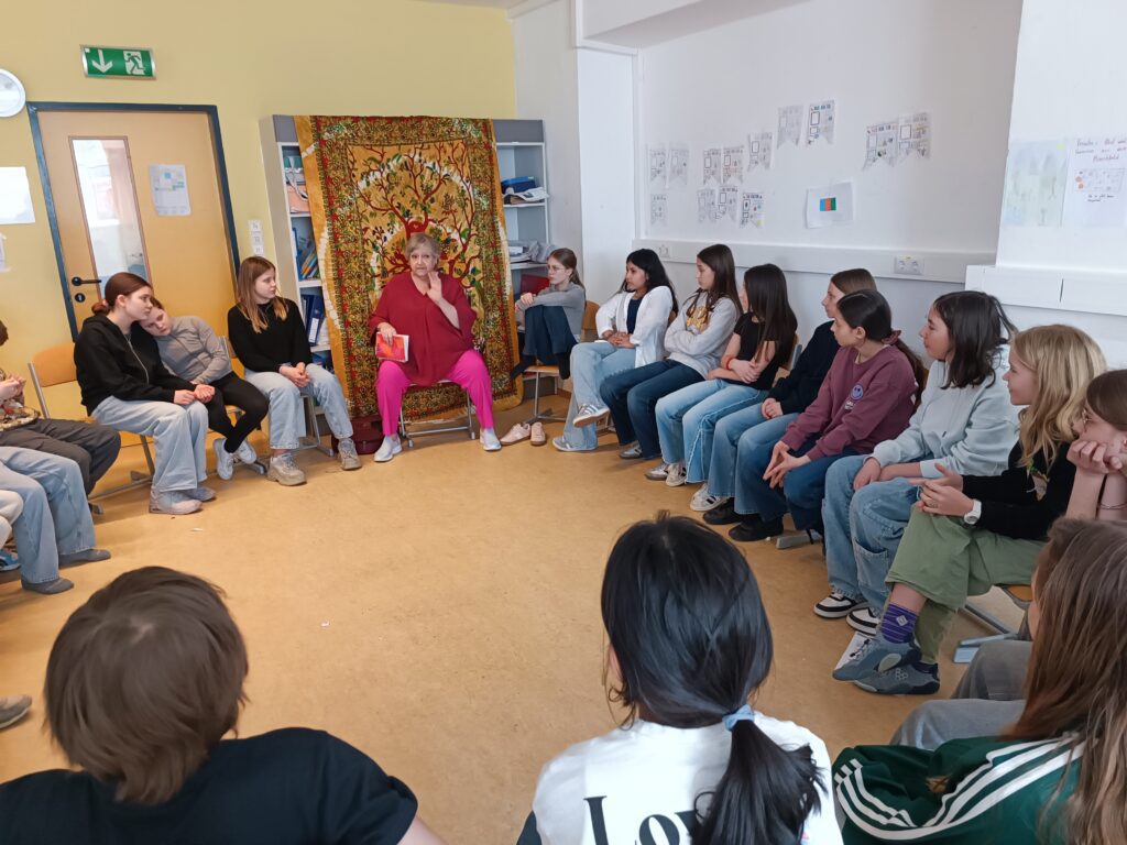 Beide Klassen hatten eine große Freude der Märchenerzählerin zuzuhören und genossen die Doppelstunde, in der das Erzählen und Zuhören im Mittelpunkt standen, sehr.
