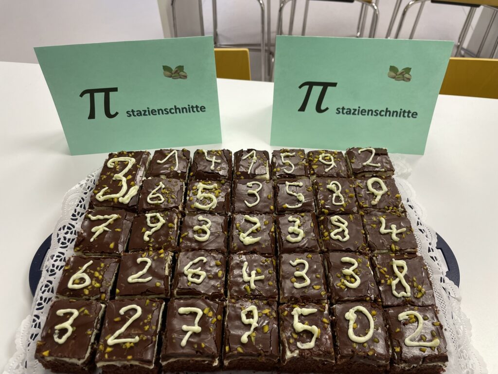 Zum Start gab es gleich etwas Süßes: πstazien-Gugelhupf von Julia und πstazien-Schnitten, die perfekt zum Thema passten. Gestärkt bekamen wir anschließend unseren π-Pass, mit dem wir verschiedene Stationen besuchen konnten. Es gab viele kreative Aufgaben rund um π: