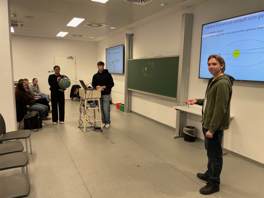 Am 26.11.2025 nahmen die Schülerinnen und Schüler der 6A und 6B an einer Campus Führung der TU Wien teil. Im Anschluss besuchten sie den Workshop „Wie spät ist es? Vom Sonnenstand zur Uhrzeit“. Das Schulprogramm der TUForMath hat das Ziel ein paar spannende Anwendungen der Mathematik, einfach aufbereitet für Schulklassen in verschiedenen Workshops, vorzustellen und somit die Begeisterung für Mathematik zu fördern. Ohne Zahlen und mathematischen Ideen wären viele Wissenschaften unmöglich und etliche technische Geräte würden nicht mehr funktionieren. In unserem täglichen Leben kommen wir ständig mit Anwendungen der Mathematik in Berührung, ohne es vielleicht aktiv zu merken.