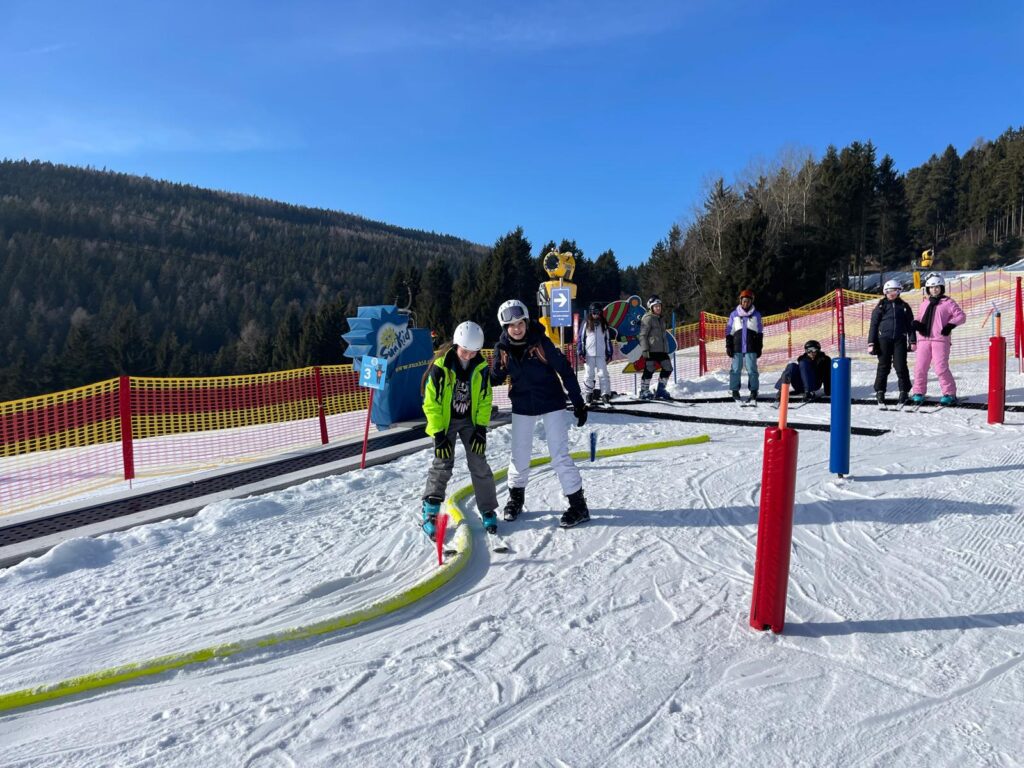 Auf 2 Termine verteilt, verbrachten die 2. Klassen (152 Teilnehmer*innen) im Jänner auch heuer wieder einen Ski- und Snowboardtag in Mönichkirchen/Mariensee. Gestartet wurde bereits um 6.40 Uhr bei der Schule und es folgte eine sehr gemütliche und unterhaltsame Busfahrt. Dort angekommen wurde das geliehene Material verteilt und bereits um 9.30 Uhr ging es, bei herrlichem Wetter, ab auf die Pisten. Einige Schüler*innen wagten sich erstmals auf Ski oder Snowboard – doch binnen kürzester Zeit gelangen ihnen die ersten Schwünge. Viele unserer Schüler*innen zeichneten sich als echte Profis aus und so konnten schon am Vormittag zahlreiche Pistenkilometer bewältigt werden.